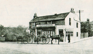 The Denbigh pub at the top of the hill still stands today, little changed after some sixty or more years. What could be more perfect? The traffic referred to was predictable – a flat-top milk-float carrying two large brass milk-chums and the large canvas-covered Carter-Paterson’s delivery cart drawn by two