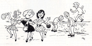 Giving a heaving cough, I turned away in disgust, and seeing my expression she gave me an even harder push than before. Obviously the leader of her pack, she yelled: “Right you two, come on. We can do better than this lot!” The girls turned right, up the ‘Avenue’, and by common consent we turned left and headed for home.
